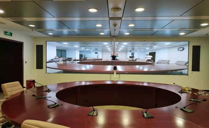 中國石油集團(tuán)安全環(huán)保技術(shù)研究院1層視頻會(huì)議室創(chuàng)新型的運(yùn)用0.93mmLED顯示屏,不僅滿足單位召開視頻會(huì)議室使用,同時(shí)可用于超高分圖像的展示工具,對(duì)研究院研發(fā)團(tuán)隊(duì)成果展示、實(shí)驗(yàn)過程分析提供保障。同時(shí)對(duì)現(xiàn)有視頻會(huì)議功能進(jìn)行升級(jí),由原來模擬、標(biāo)清視頻會(huì)議形式升級(jí)為高清、4K會(huì)議,